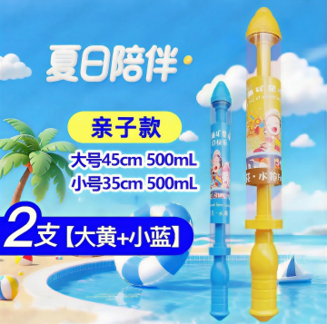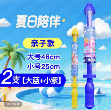 将这张水枪手牌图修改为:大款水枪换成黄色,小款水枪换成粉色,保留所有文字、排版和背景不变,保持高清画质