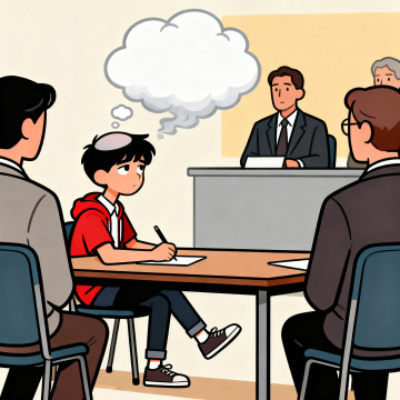 清新明亮的教室插画,扁平风与漫画感结合,简约主义构图,展现学生积极举手互动的温馨场景,充满舒适感与童趣。