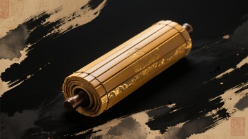 中式风格,干净画面,适用背景素材,特写视角下微微卷起的古旧宣纸书卷,上面布满工整的黑色毛笔小楷汉字,纸张呈现自然的黄褐色调与细腻纹理,柔和的侧光从左上方照射,在书卷边缘形成清晰的明暗对比与温暖高光,背景是模糊的水墨风格远山轮廓,整体营造出宁静、古朴、富有文化底蕴的氛围,画面简洁雅致,留白恰当,无任何文字信息干扰。