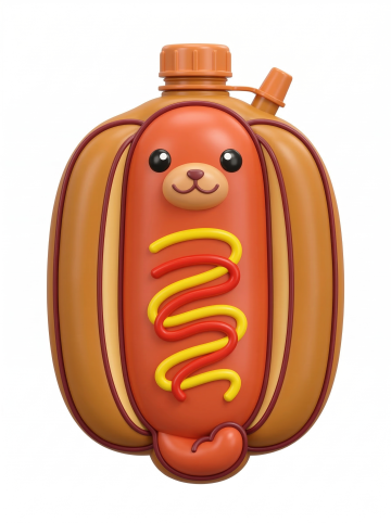 软3D风格的热狗水壶,拟人化设计搭配可爱表情,卡通感十足,趣味横生,适合节日限定款。