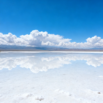 超写实雪山冰湖风景,纯净渐变蓝白主色调,晴朗无云的天空与雪山倒影在平滑如镜的冰面上形成完美对称构图,前景是广阔结冰的湖面,冰面有细微裂痕纹理,中景是被薄雾半遮的连绵雪山群,主峰巍峨耸立,山顶覆盖厚实积雪,山体岩石纹理清晰可见,阳光从侧上方照射,在雪山上形成明亮高光与深邃阴影对比,整体营造出极致宁静、圣洁、辽阔的氛围,冷色调光影,高清细节,8K分辨率,自然景观摄影风格。