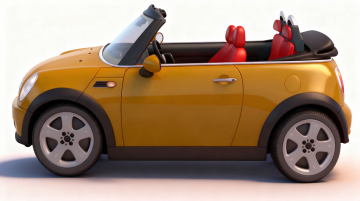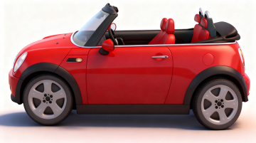 可爱卡通3D粘土风汽车,拟人化设计,色彩斑斓,童趣十足。