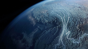 未来感与科技感交织的虚拟自然景观,晶莹剔透的玻璃风冰山在光影中展现极简主义的体积感与3D立体层次。