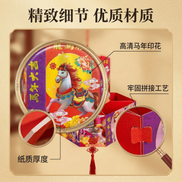 国潮风坚果礼盒,拟人化笑脸由坚果拼成,浮雕云纹点缀,喜庆红金配色,中式元素与现代创意融合,节日氛围浓厚。