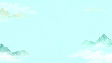 扁平风设计,清新自然景观,虚拟山水与亭台相映,营造宁静和谐氛围。