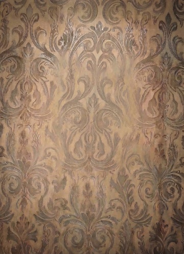 一幅具有浓厚油画质感的装饰图案,以纯色背景为基底,画面中布满简约流畅的波浪形花纹,线条呈现出油画特有的厚重笔触和细腻纹理,整体风格统一和谐,给人一种复古而优雅的视觉感受。