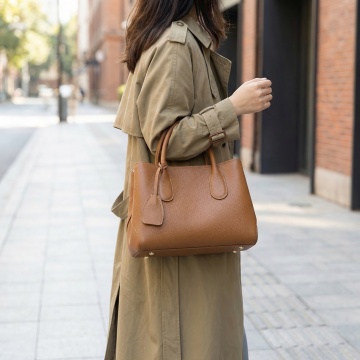 现代感皮质托特包,简约主义设计,光影交错凸显质感,商务与优雅并存,重拟物风实景呈现,时尚大气。