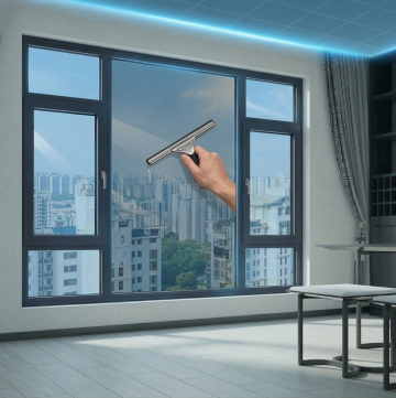 一张现代风格的室内窗户特写照片,采用高清晰度3D渲染技术,光线明亮柔和,以自然光为主,从窗外照射进来,营造出通透、干净的氛围。窗框材质为深灰色金属,表面光滑带有细微的哑光质感,搭配一个金色的金属把手,位于窗框右侧中间位置。窗外是城市景观,有高楼大厦、绿树和街道,但窗户本身的构造为全新设计的样式——[请在此处插入您希望的全新窗户构造描述,例如:上下推拉式双层玻璃窗,带有横向分隔条和内置百叶帘;或左右对开式拱形玻璃窗,边缘有精致的雕花装饰;或不规则多边形全景落地窗,无明显分隔但有隐藏式边框]。室内墙体为纯白色,窗台下是浅色的洗手台一角,整体画面构图平衡,色彩以黑白灰为主色调,辅以窗外的自然绿色和建筑色彩,视觉层级清晰,窗户作为主体被突出展示,细节丰富,真实感强,符合现代家居设计的审美和展示需求。