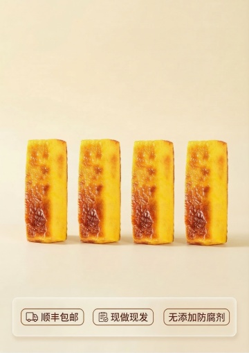 实景感光影下,金黄糕点如油画般温暖质朴,轻拟物浮雕质感凸显细腻纹理,营造出柔和舒适的温馨氛围。