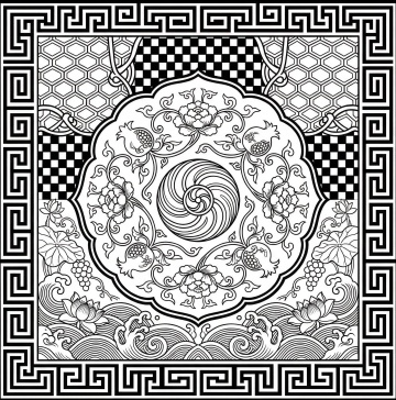 刺绣风工笔狮,中式古典纹样,重拟物细节,浮世绘云月背景,民族风情浓郁。