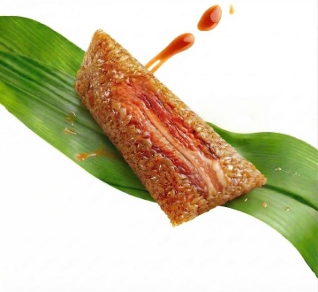 一张白色圆形瓷盘盛放的中式菜肴,菜品色泽红亮诱人,表面覆盖光泽感的酱汁,点缀细小的红色辣椒碎,食材形态自然堆叠,具有清晰的质感和细节,纯色白色背景,简约现代风格,整体构图规整居中,无任何文字、logo或水印
