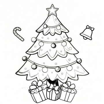 插画风圣诞树,毛发生长质感,轻拟物设计,点缀彩灯礼盒,雪景背景,喜庆卡通感十足,节日氛围浓厚。