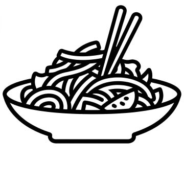 一套6个同风格食品图标集合,规整排布在纯色背景上。每个图标均采用深棕色与白色对比的简约线条插画风格,线条流畅圆润,无渐变无阴影,平面化设计。包含:1. 棕色碗中用筷子夹起面条的图标;2. 棕色碗中盛满米饭,顶部有一小勺米饭的图标;3. 棕色碗中装着热气腾腾的汤,汤面上漂浮着菜叶和气泡的图标;4. 棕色碗中堆着圆形汤圆,有几个汤圆叠在一起的图标;5. 棕色碗中装着粥,表面有一圈圈波纹,中间放着一颗红枣的图标;6. 棕色碗中盛着炒饭,饭粒分明,点缀着胡萝卜丁和玉米粒的图标。所有图标大小一致,排列整齐,保持相同的碗型设计语言和视觉统一性。