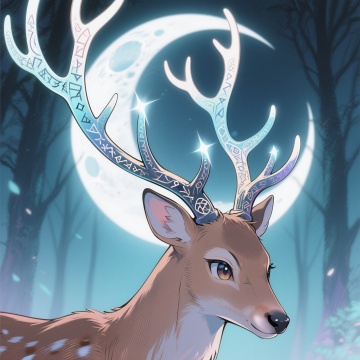 插画风鹿头骨,描边清晰,重拟物细节,光影与体积感突出,静谧氛围中透出写实质感。
