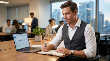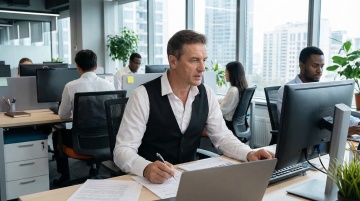 商务感十足的实景办公场景,柔和光影勾勒专业氛围,简约主义设计搭配清透玻璃桌,印刷风文件细节提升质感,传递舒适而高效的职场体验。