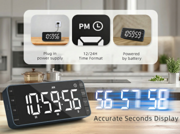 现代感与科技感融合,扁平风设计搭配霓虹灯数字显示,金属质感边框,精准秒数动态呈现,商务简约风格,适用于日常家居场景。