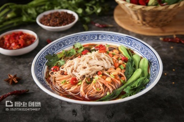 超写实美食摄影风格,一碗热气腾腾的中式面条,深棕色浓郁汤汁,面条被木筷挑起呈现自然垂坠感,碗中点缀大块炖煮至软烂的酱色肉块、翠绿香菜和葱花,碗边散落鲜红完整干辣椒,背景为古朴木质纹理与中式格栅窗的模糊剪影,整体暖色调(棕红、赭石、暖黄为主),侧上方柔和主光源形成明显高光与阴影对比,突出食物质感与立体感,大面积留白处理增强画面呼吸感与简约高级感,木质桌面纹理清晰,整体氛围温暖诱人,细节丰富,色彩和谐统一。