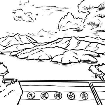 诗经画卷;淇河流淌、淇水汤汤,蒹葭苍苍形成主视觉画面;一条现代旅游公路蜿蜒在河岸,以公路和淇河为主,背景是竹子等自然景观,远景是少许连绵的青山,虚实结合。与诗意的自然景观和谐融合,整体画面以诗经画卷形式展示。