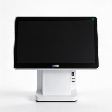 一张现代简约风格的电脑显示器产品展示图,采用全新的色彩搭配,从略微侧倾的角度拍摄,显示器主体为光滑的黑色边框与银色金属底座,屏幕呈现纯白色背景,整体设计简洁干净,具有清晰的产品轮廓和细腻的材质质感,光影柔和自然,突出显示器的现代科技感与简约美学。