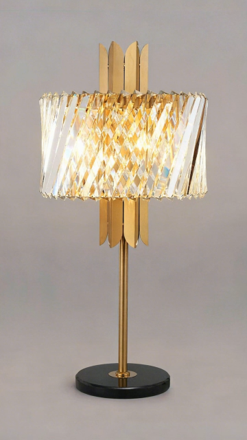 奢华感与优雅感交融的3D重拟物风台灯,金属与玻璃材质碰撞,极繁主义光影交织,尽显精致节日氛围。