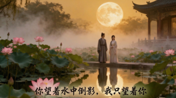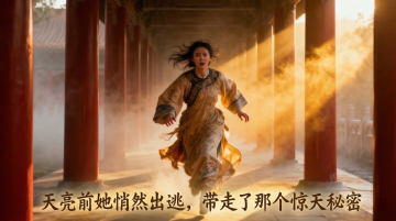 中式古典建筑与红裙女子在夕阳下交织,光影流动,3D重拟物风呈现油画般的唯美感,静谧中透出浪漫梦幻。
