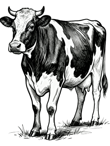 六个不同配色、不同样式、不同材质的牛造型,采用黑白手绘素描风格,线条流畅细腻,带有铅笔笔触质感,牛的姿态自然生动,站立于简约草丛背景中,整体构图上下两行对齐排列,浅色背景衬托,突出牛的主体形象,风格统一且细节丰富,展现出手绘艺术的独特韵味。