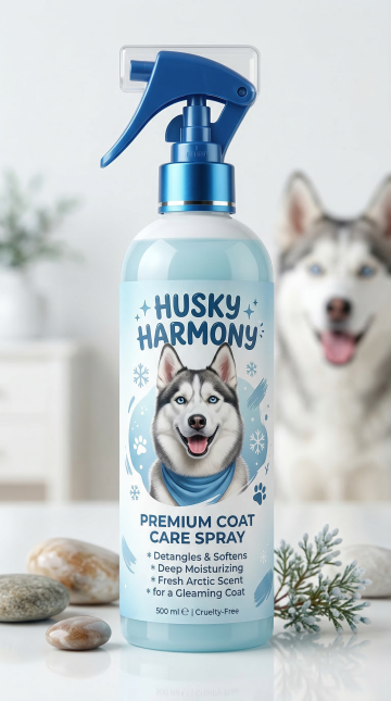 插画风卡通哈士奇形象,水彩质感背景,轻拟物设计,清新蓝白配色,简约主义布局,传递清爽舒适感,节日氛围自然融入。