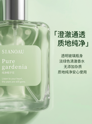 现代感与光影交织,玻璃风瓶身透出清透优雅,金属质感点缀奢华,3D渲染强化细节,重拟物风格呈现真实触感,营造沉浸式时尚美学体验。