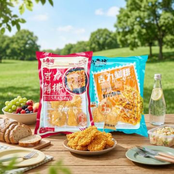 抖音直播带货主图,利润款产品展示,主题'技术派来了!减脂黄鳝片工厂溯源专场',展示新品尝鲜全家福套餐,包含多种裹糊水产品组合,突出产品丰富性,添加醒目文字'新品尝鲜全家福套餐',整体高端大气,适合展示全系列产品,真不错