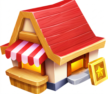 卡通游戏场景,前方是宽阔的石路地面,左右两侧空间开阔,后方是灌木丛和树木,道路两旁有彩色的旗帜,远处有一个风车背景是蓝天晴空,整体色调以蓝色和绿色为主,风格介于扁平与写实之间,避免动漫感和过度实体化,整洁清爽