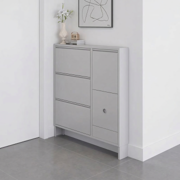 现代简约风格玄关,融合金属与木纹元素,搭配藤编收纳箱与绿植,营造舒适质朴的居家氛围,质感细腻,清新自然。