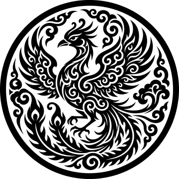 中式剪影风格,融合古典云纹与飞鸟形态,单色水墨意境,展现民族美学韵律。