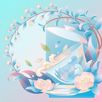 中式古典插画风,国潮元素融入虚拟自然景观,展现山水和谐之美。