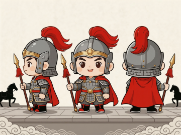 国潮风插画,拟人化财神萌趣登场,扁平设计融合剪纸元素,喜庆红金配色,手持金元宝与福字卷轴,传递新春吉祥祝福。