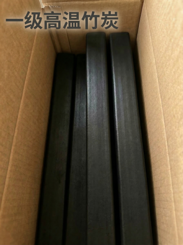 清新竹林实景背景,质朴竹炭堆叠,大字风促销文案,双色设计强化信息层级,印刷风视觉呈现,突出无烟无味、厂家直销卖点。