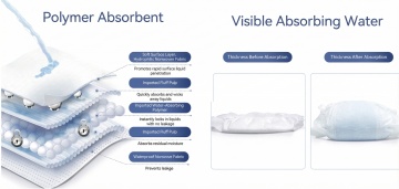 白色背景下,三层不同结构的透明材质叠层设计,最上层为带有细密六边形孔洞的平面层,中间层呈现波浪状起伏并同样布满小孔,底层是规则排列的半球形凸起结构,三个向上的蓝色箭头从叠层中心位置发出,整体采用科技感的蓝白渐变色调,光影柔和,具有清晰的结构层次感和半透明质感,展现产品的透气性与支撑性,设计风格简洁现代,偏向功能性产品的技术展示图。