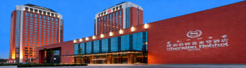 现代简约风格的高端酒店外观,黄昏时分,温暖的橙黄色灯光从建筑内部透出,照亮带有水平线条的米棕色石材与木质装饰立面,宽敞的入口门廊有整齐排列的嵌入式灯带和支撑柱,门前停放着几辆轿车,周围环绕着绿树,天空呈现从浅蓝到粉紫的渐变暮色,建筑整体采用对称布局,具有清晰的垂直与水平线条结构,光影对比柔和,营造出宁静而奢华的氛围。