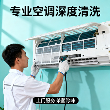 实景感家居场景,双色设计风搭配大字风标题,简约主义呈现舒适清爽氛围,传递温馨服务体验,突出新居开荒保洁的专业与信赖。