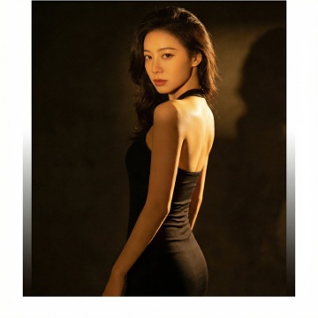 极简单色设计,黑色高领无袖针织展现面料质感,搭配珍珠耳饰,营造优雅、商务与时尚融合的性冷淡风视觉。