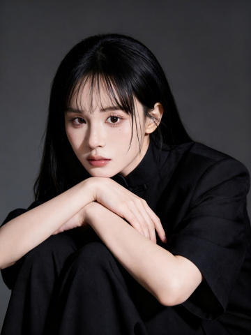 极简单色设计,黑色高领无袖针织展现面料质感,搭配珍珠耳饰,营造优雅、商务与时尚融合的性冷淡风视觉。