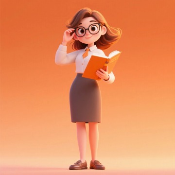 软3D风格的卡通女孩,戴眼镜穿绿色拼接衬衫,手持笔记本,清新可爱,充满舒适感与轻拟物设计细节。