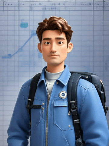 3D皮克斯风格,工程师,背景为数据表,3D形象照