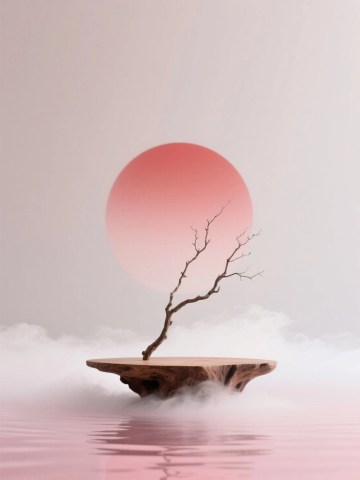 国潮风3D场景,剪纸风祥云与浮雕感梅花环绕明月,轻拟物台座映衬梦幻中式浪漫,虚拟现实质感尽显中秋唯美意境。