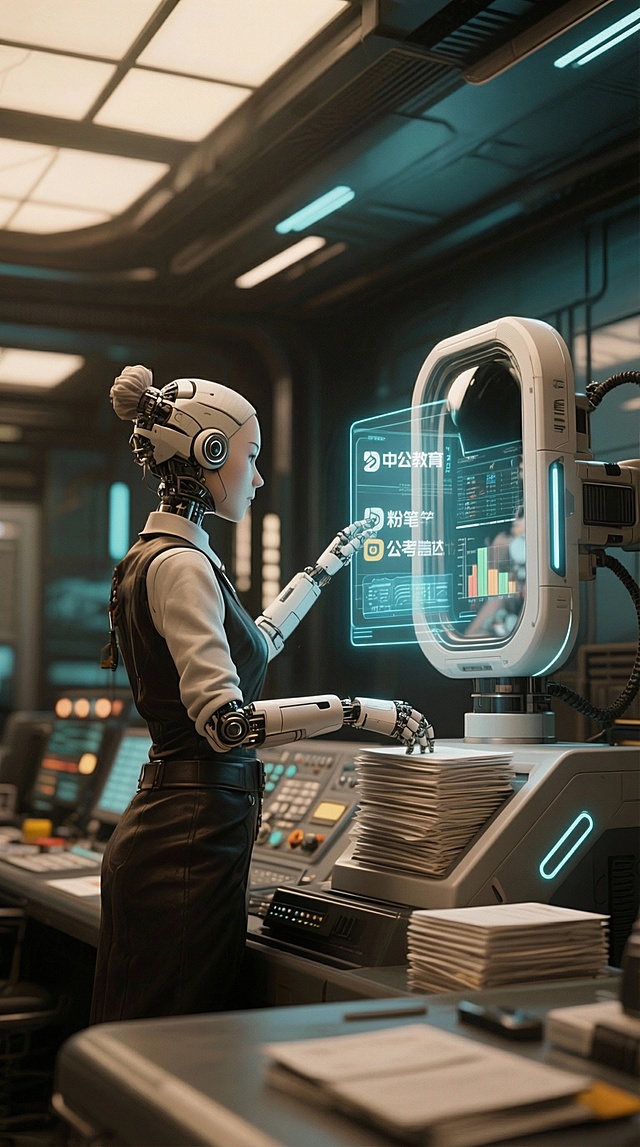 赛博朋克风格的现代化工厂内部场景,未来感十足的高科技生产线,金属质感的银白色精密设备与霓虹蓝色、紫色管线交织,昏暗空间中多色全息投影显示生产数据,工人身着带有发光线条的深色工装在机械臂间操作,地面反射着设备冷光形成镜面效果,天花板悬挂的工业吊灯投射出强烈光束切割黑暗,整体呈现出高科技、冷峻、略带神秘的工业氛围,画面构图采用纵深视角展现工厂的宏大与繁忙,细节丰富的机械结构与未来科技元素完美融合。详情