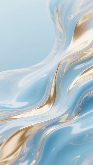 蓝白流线交织,鎏金点缀,软3D液态风呈现抽象现代感,优雅奢华,极繁主义美学尽显。