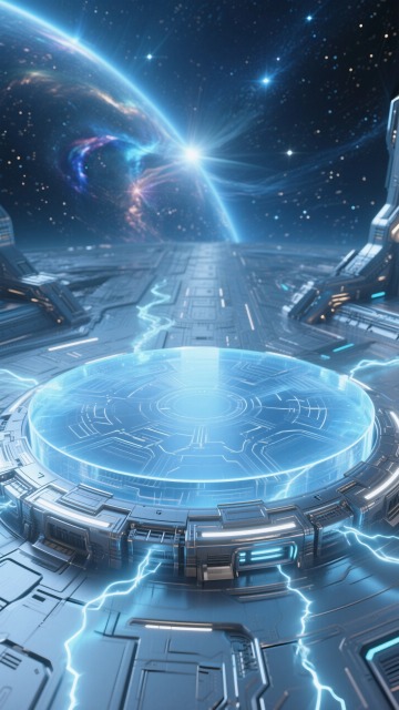 未来感3D设计,科技金属风平台悬浮于液态星云中,虚拟现实空间探索。