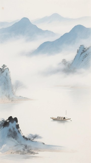 工笔与水墨交融,青绿山水间云雾缭绕,江流蜿蜒如诗,静谧唯美的古典意境,尽显中式美学之魂。