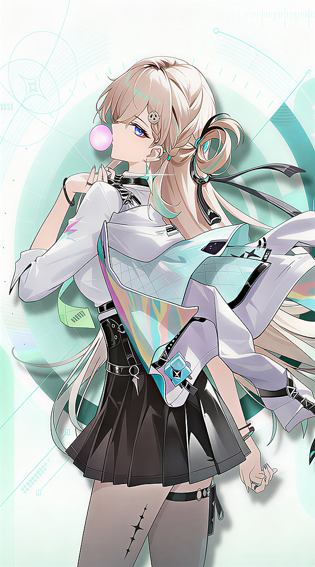 生成和参考图同色系(黑、白、亮蓝)的二次元美女,佩戴电竞耳机,风格活泼灵动,画面为竖着的长图详情