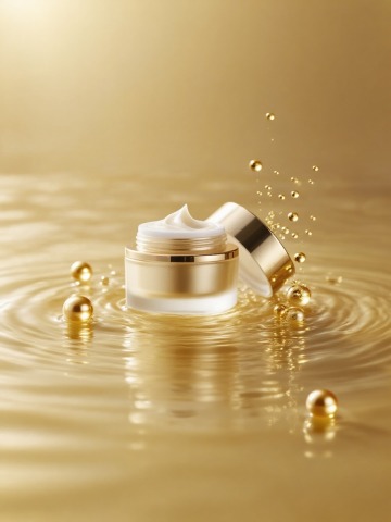 精致的白色乳霜置于铺满翠绿苔藓的原木之上,周围散落着棕色颗粒状物体,背景为模糊的绿色植物与几片带水珠的翠绿叶子,整体呈现清新自然的水彩画风格,柔和的笔触,通透的色彩晕染,细腻的纹理表现,光影柔和,营造宁静自然的氛围,构图以原木和苔藓为主体,乳霜为视觉焦点,背景虚化突出主体。