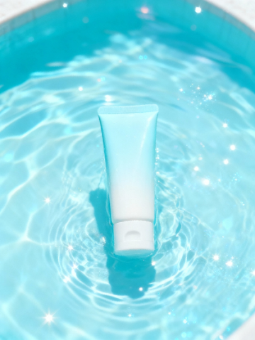 简约主义风格,清新白花点缀,水面倒影营造舒适感。